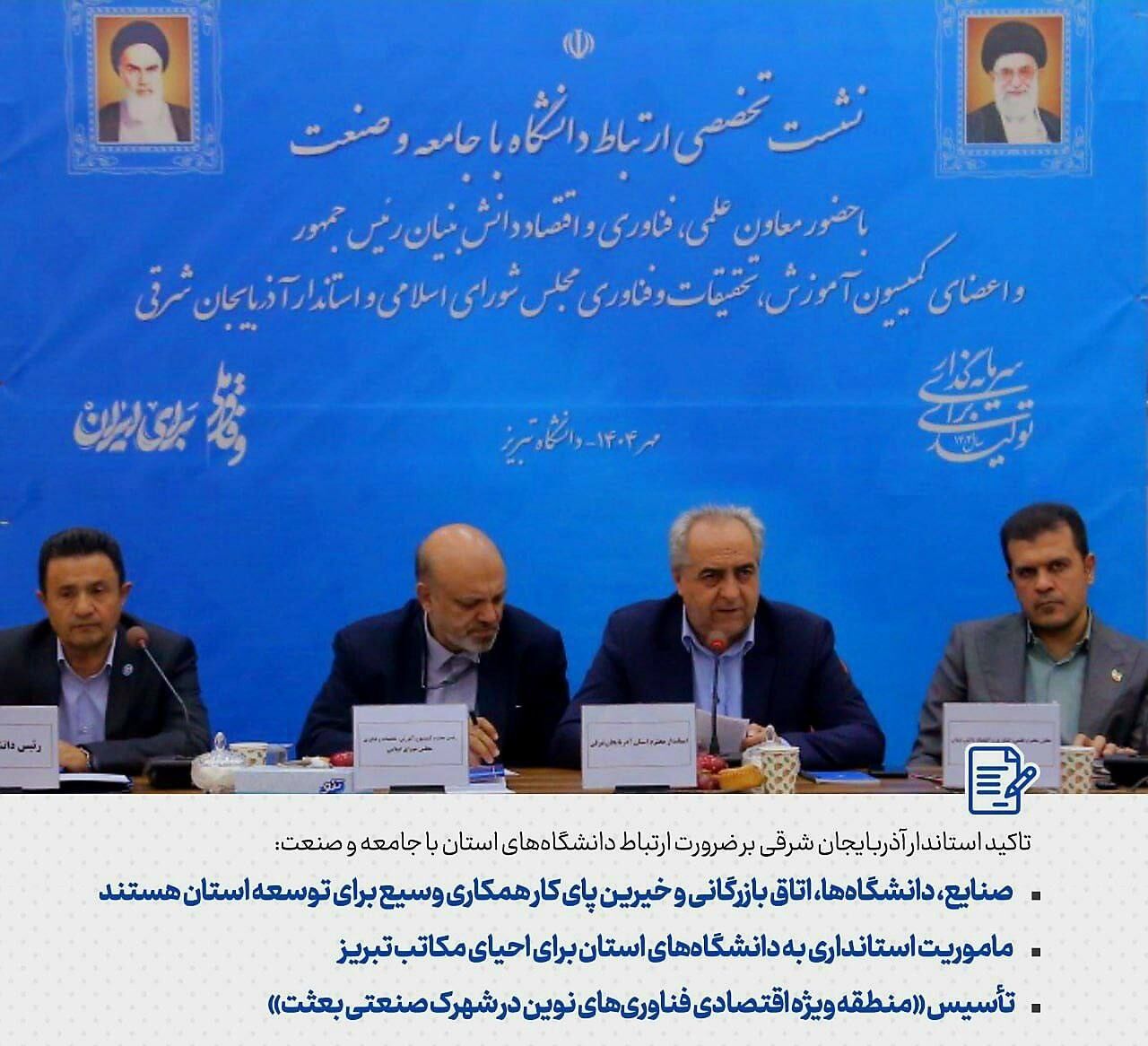 استاندار آذربایجان شرقی: صنایع و دانشگاهها پای کار توسعه استان هستند