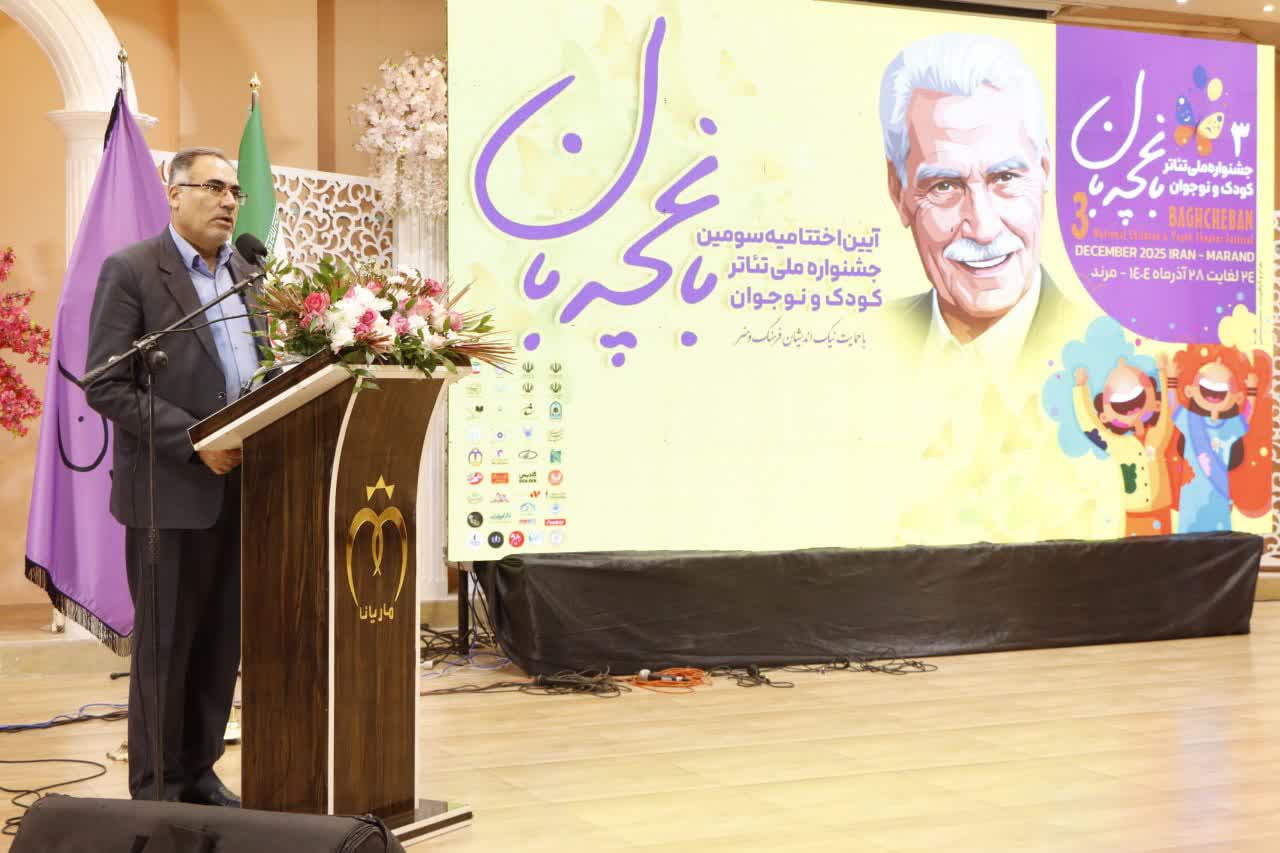 مدیرکل فرهنگ و ارشاد اسلامی آذربایجان شرقی، در آیین اختتامیه سومین جشنواره ملی تئاتر کودک و نوجوان باغچه‌بان مرند گفت: این جشنواره نمادی از رویکرد منسجم و ملی تئاتر استان در مسیر عدالت فرهنگی و تربیت نسل آینده فرهنگ و هنر کشور است.